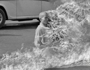 The Buddhist Crisis continues: Thich Quang Duc, an elderly Buddhist monk, protesting the persecution of Buddhists by Ngo Dinh Diem (a Catholic), dictator of the kleptocratic (government by thieves) Republic of (South Vietnam) commits suicide by dowsing himself with gasoline and then setting himself ablaze.